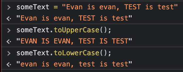 예제 텍스트 someText의 내용을 "Evan is evan, TEST is test"와 같이 대소문자를 섞어 문자열을 재구성하고 함수를 실행시켰습니다.