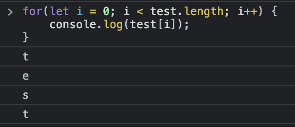 문자열의 길이만큼 for문이 반복하면서 문자열의 문자 하나하나를 출력하는 예제입니다.