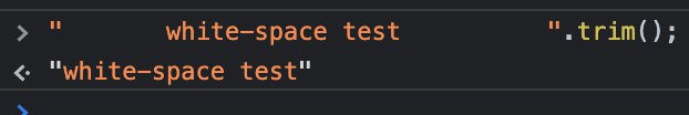 위의 예제처럼 문자열 앞에 의도적으로 공백을 많이주고 trim함수를 실행시켰는데 공백이 앞뒤로 모두 제거된 문자열을 반환하는것을 볼수있으며 이때 주의깊게 볼점은 white-space와 test사이의 공백이 있는데 이 공백은 사라지지 않았다는점입니다. 이처럼 공백을 무조건 없애는게 아닌 최초 맨 앞과 뒤의 공백들만 제거합니다.
