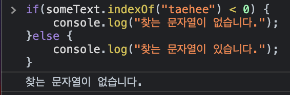 위의 예제는 찾는 문자열이 없을경우 음수(-1)을 반환하는 특징을 이용해서 조건문을 구성한 예제입니다.