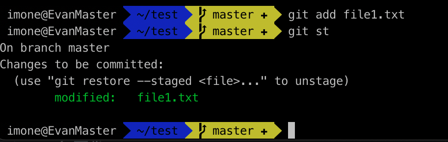 Unstaged상태에서는 커밋을 할수 없으며git add명령어를 통해서 파일을Staged상태로 만들어주면 커밋이 가능합니다. 이처럼Modified명령어의 커밋 가능여부는 파일이Staged상태인지Unstaged상태인지에 따라 달려있습니다. 아래는Unstaged상태였던 파일을git add명령어를 통해Staged상태로 변경시켜주었으며 이제 커밋할 준비가 됬습니다.