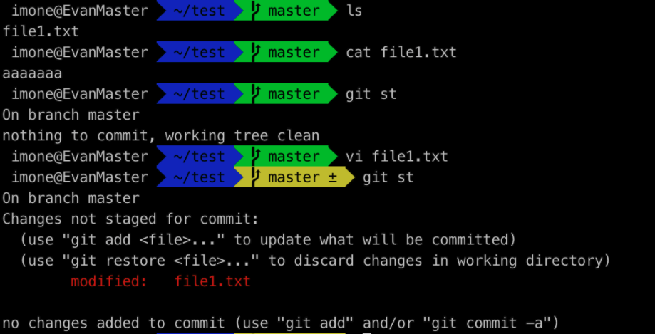 - Unmodified상태의 파일을 수정하면 아래 이미지와 같이 Modified상태가 됩니다.