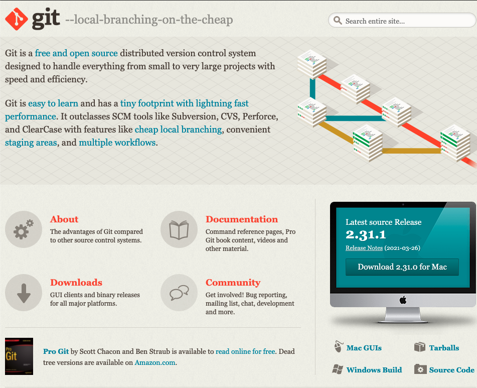 아무튼 나의 git버전은 2.23.0이였고 git 공식 홈페이지에서의 최신버전은 아래와 같이 2.31.1이었다.