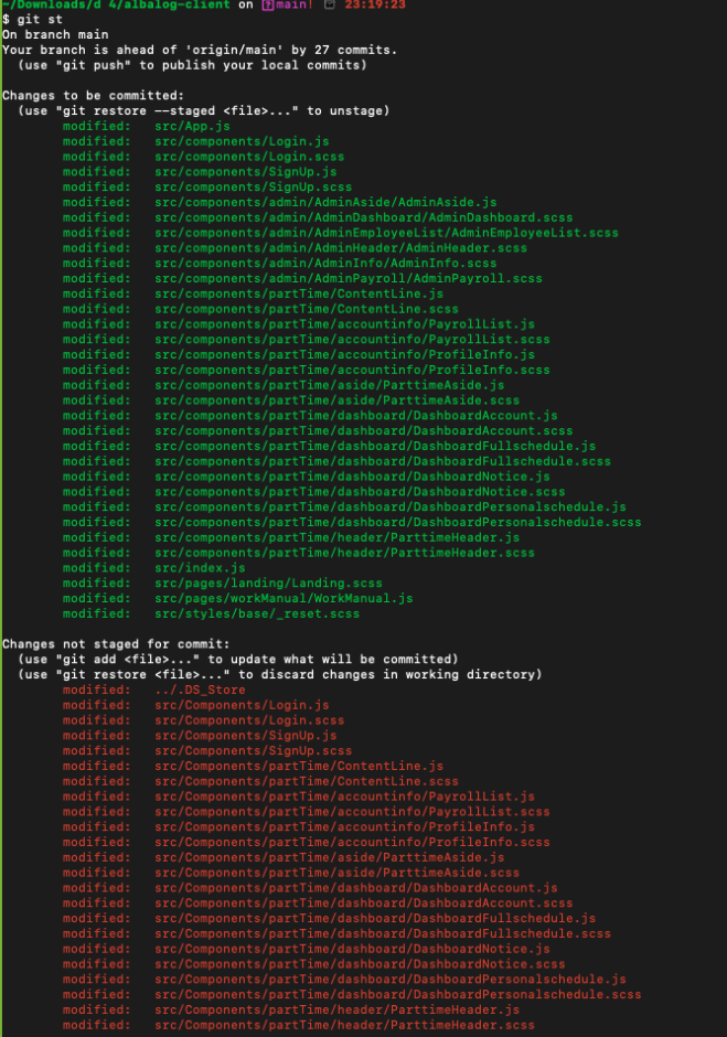 이미 Component에서 component로 바꾸었으니 Component 하위의 모든것들은 없는거나 마찬가지였으므로 git add가 되지 않았다. 그런데 실제로 존재하는 component폴더 하위의 모든것들은 정상적으로 add가 되었다. 이게 정상적인 결과인데 Component들이 왜 안됬는지는 원인은 찾지못했지만 해결은 하였다. 원인은 내가 더 깃에대해 잘 알게되면 회고하다가 풀릴꺼같다. 아래는 git add .을 적용한 결과이다.