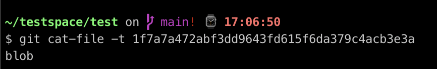 파일의 SHA-1 키를 외워서 사용하는건 어려운걸 넘어서 그냥 굳이 그렇게 할필요가없다 그리고 이 해시값에는 원라 파일의 이름이 담겨져있지않으며 내용만저장을 했을뿐인데 이러한 개체를 Blob이라고 하며 binary large object의 약자이다. 그래서 git cat-file -t명령으로 SHA-1 key를 입력하면 가리키는 해당 개체가 무슨 개체인지 확인할 수 있다.