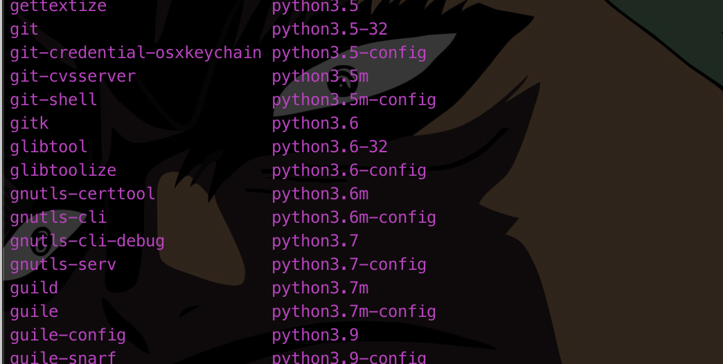 응용프로그램이 설치경로를 /usr이 아닌 /usr/local을 선택했을때 설치 프로그램이 위치할수 있고 명령어도 존재 가능하다 나의 맥에서 보이는 응용프로그램은 git과 python이 있었다.