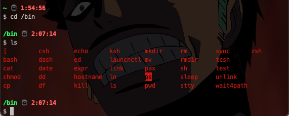 그래서 잘 보면 ls명령어가 실제로 /bin 폴더에 존재하는것을 볼수 있다.